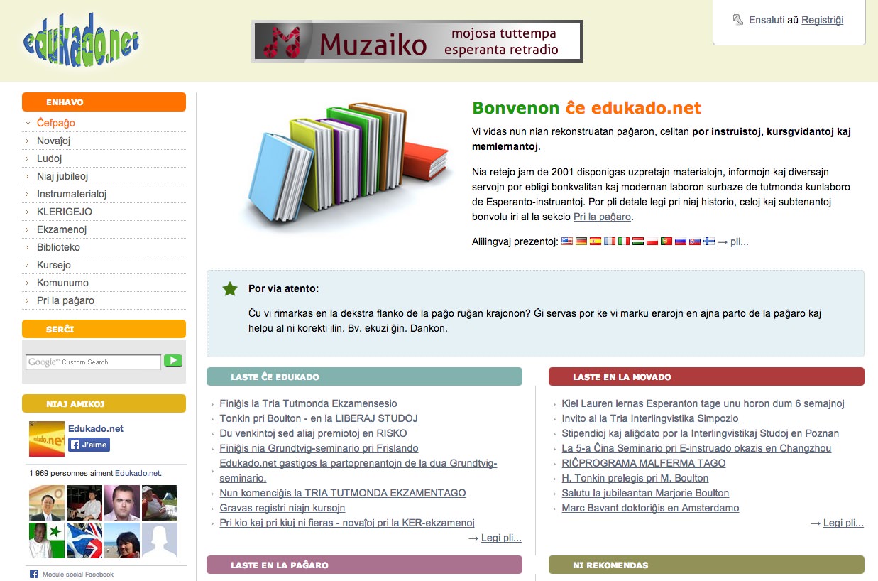 J’ai créé le site www.edukado.net en 2001 dans le but de soutenir les personnes enseignant l’espéranto de par le monde, en leur fournissant des informations détaillées sur le matériel d’enseignement existant, livres, disques, jeux, etc. Bien vite, j’ai commencé à mettre également à leur disposition du matériel prêt à l’usage, produit par edukado.net. Dès le début, une fondation américaine, ESF, a soutenu le projet en finançant la première version du site et le travail de son rédacteur jusqu’à aujourd’hui. Il est intéressant de souligner aussi que lorsque, il y a quelques années, une refonte totale du site s’est montrée nécessaire, ce sont les usagers eux-mêmes qui ont rassemblé les 35 000 € nécessaires. Cela montre que ce site est important pour ses utilisateurs.