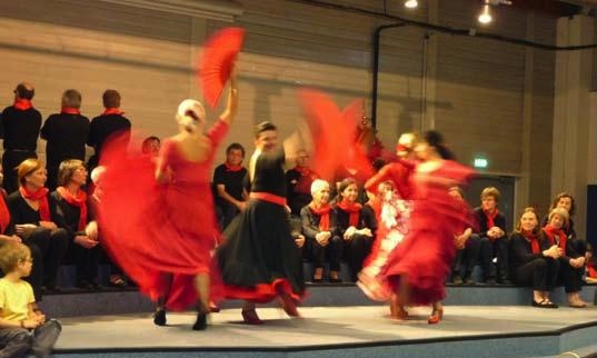 C’est à une fête originale que les espérantistes du Mans avaient invité une trentaine de leurs collègues de quatre départements alentours (72, 44, 53, 37). Après un accueil amical, nous avons déjeuné au restaurant La table d’Owen. L’après-midi était organisé en commun avec la fête de Noël du Secours Catholique. Dans le grand salon Pierre Guédou étaient donc présentes environ deux cents personnes ! L’asso catholique proposa d’abord une pièce de théâtre au thème chrétien. Puis commença le spectacle Autour de Carmen, présenté pour la dernière fois, par le chœur espérantophone INTERKANT’. 35 chanteurs et chanteuses vêtus de rouge et de noir. À tour de rôle, Sébastien Erhard et Franjo Lévêque présentaient contexte et repères pour aider à comprendre cet opéra de G. Bizet. Le chœur et la soliste, Zdravka Le Nepveu, alternaient sur la scène avec quatre danseuses aux costumes andalous. De vifs applaudissements remercièrent les artistes ! (Info : Arlette Frangeul ; Photo : Jeannine Daguin, La Anĝeva Folio, februrao).
